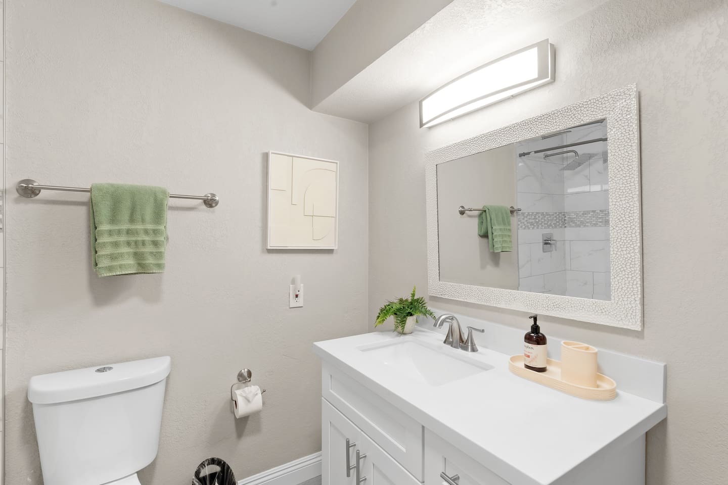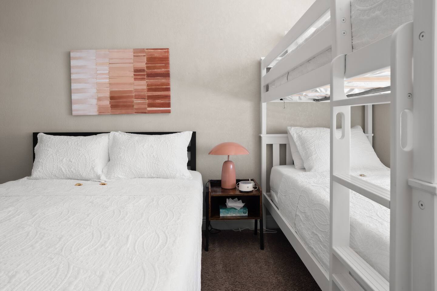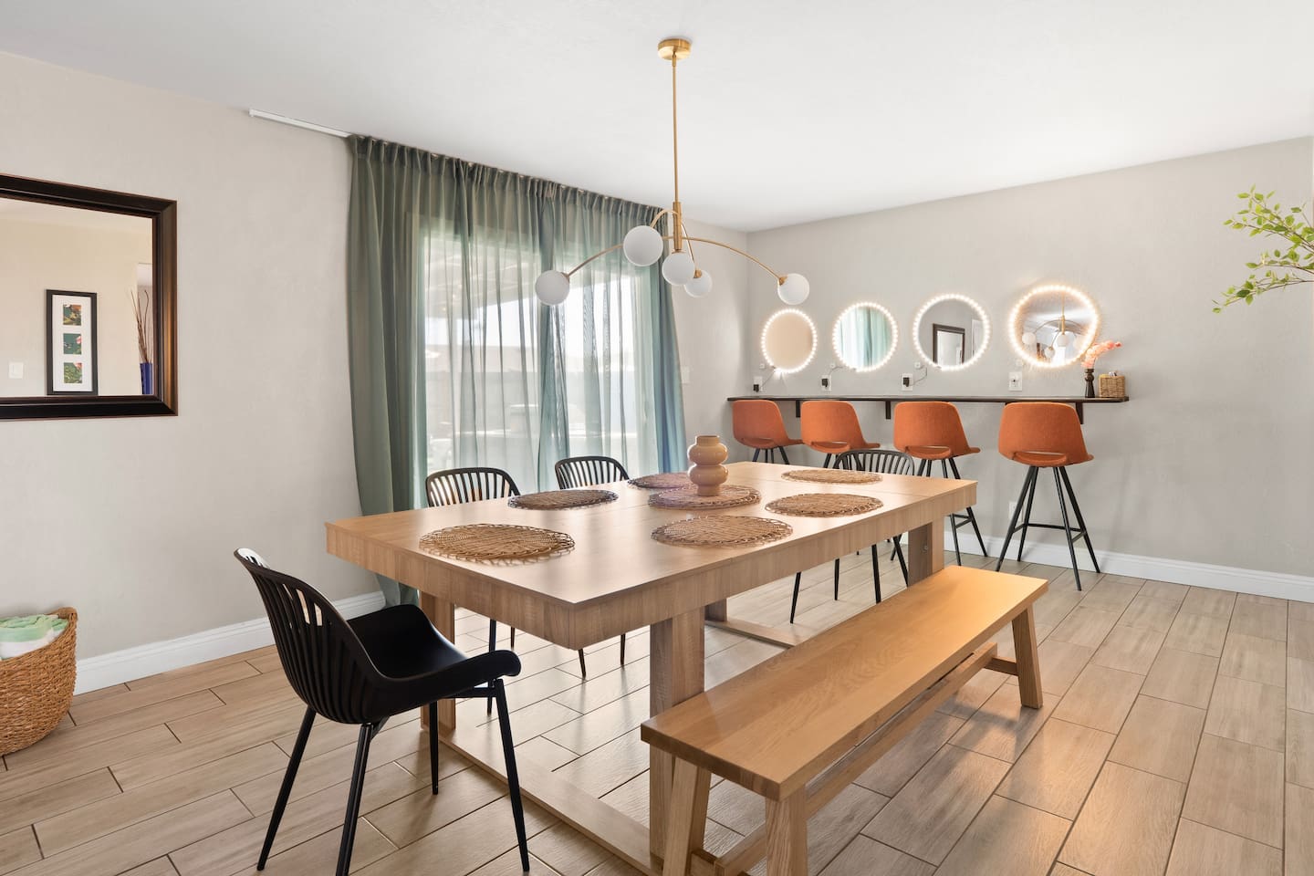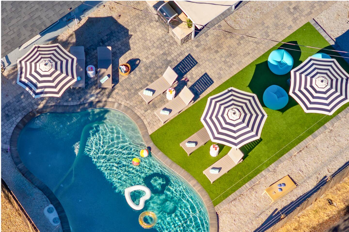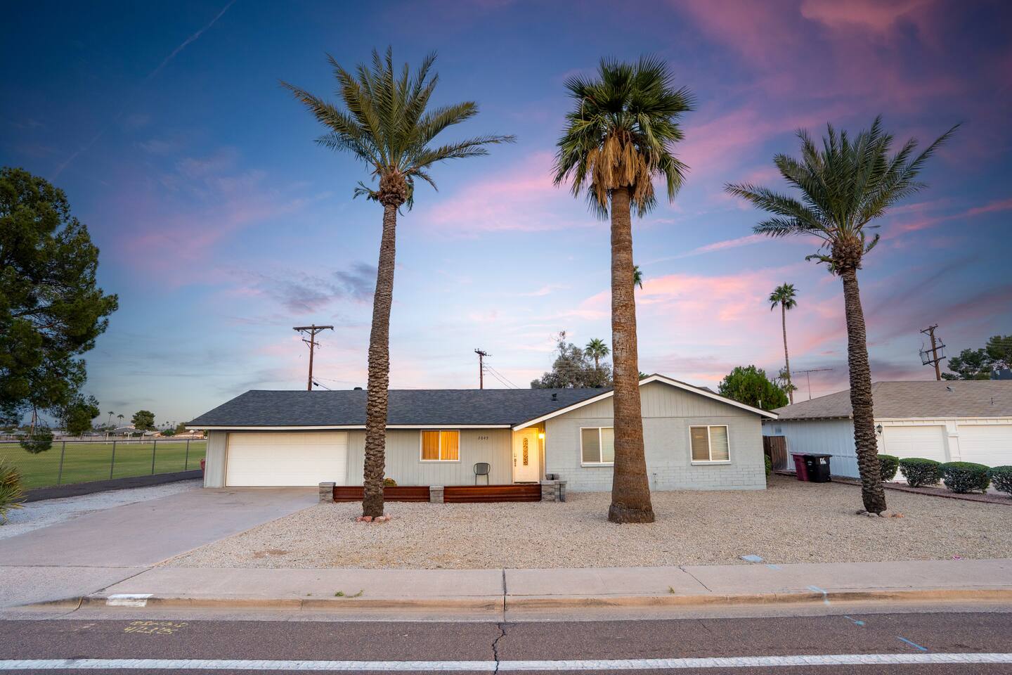 🌵 Prime Scottsdale Location Minutes from Old Town Scottsdale, you’ll have access to top rated restaurants, vibrant nightlife, world class golf, hiking trails, and shopping. You’re also within walking distance to grocery stores, coffee shops, and local eateries. This location can't be beat. 🏝 Resort Style Backyard Oasis Your private outdoor paradise includes: • Expansive saltwater pool with a built-in Baja shelf • 6 resort style chaise loungers ideal for sunbathing and poolside relaxation • Fire pit lounge pit with cushioned seating zones designed for relaxation • Built in BBQ, outdoor fridge, & prep area • Outdoor dining table • Outdoor TV for game days, movie nights, or poolside streaming • Ping pong, cornhole & yard games to elevate your stay • Ambient outdoor lighting for a soft, glamorous glow at night Every corner of the backyard is thoughtfully designed to feel like a boutique desert hideaway. ☀️Luxe, Newly Remodeled Interior The Saltwater Mirage features high-end finishes and comfortable accommodations for up to 14 guests across 9 beds, with 2 additional cots. Enjoy a serene primary suite with plush bedding, a fully stocked chef ready kitchen, stocked coffee bar, and a dedicated beauty bar perfect for groups getting ready together. ---------------------------------- 🛏 Sleeping Arrangements Bedroom #1 • King bed with plush linens Bedroom #2 • Queen bed + dedicated workspace with external monitor Bedroom #3 • Queen bed • Twin-over-Twin bunk Bedroom #4, Bunk Room • Two Full-over-Full bunk beds Extras: • 2 twin cots available • Pack & Play crib • High-quality mattresses, linens & pillows throughout Sleeps up to 14 guests across 9 beds + 2 optional cots ---------------------------------- 🛎️ Amenties Indoor • Fast WiFi • Chef ready kitchen • Coffee bar • 3 TVs (including outdoor TV) • Games, books & entertainment • Beauty bar with outlets Outdoor • Heated saltwater pool with resort style Baja shelf • Fire pit lounge area • Builtin BBQ with outdoor fridge • Alfresco dining table • Outdoor TV • Cornhole, jenga, and yard games 🔑 Guest Access Guests enjoy exclusive access to the entire home and private resort-style backyard. ⚠️ Other Things to Note • Pool heating available for $50/day • Scottsdale quiet hours & noise ordinances strictly enforced • Designed for elevated, responsible enjoyment Scottsdale License # 2041714